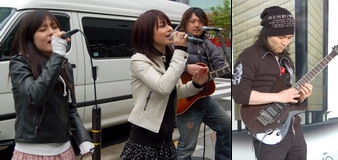 ゴールデンウィークに突入したとはいえ、カレンダーどおりだと休みは飛び飛びになるため、あまり“ゴールデン”な気分ではない4月27日の秋葉原です。 この日最初に見た“イベント”は、ごらんの告知活動です。「路上ライブ、パフォーマンス等禁止」と「自転車走行禁止」のプラカードを掲げた一団が、警察のガード付きでホコ天を練り歩いてます。 先日、とあるパフォーマーが逮捕されるという騒動があったばかりなのと、連休で人出が多くなるのを見越した活動かもしれません。 警備のほうも、ホコ天は警備の人がほぼ常駐していたため、ストリートライブは確認できませんでした。いよいよホコ天での活動が危うい状態になってます。 しかもこの日もマスコミの取材カメラがけっこう来ていて、ホコ天でインタビューを繰り広げています。ますますホコ天の居心地が悪くなりました。 一方、頼みの綱であるヨドバシ前ロータリーは、時々見回りが来るものの、ストリートの活動自体はやりやすい状態でした。なので本日のレポはヨドバシ前のみです。ただ件数はかなり少なめです。月葉さん(左)は早いうちからヨドバシ前に来ています。5月25日に神田宮地楽器Zippal Hallでライブがあります。RaM(中)も中央改札出口付近で歌ってます。5月6日に赤坂GRAFFITI、5月7日に渋谷RUIDO K2でライブがあります。田中亜弥さん(右)もその近くで歌ってます。この日はCD販売3ヶ月で1500枚目標のうち1017枚が売れたそうです。七川礼位さん(左)もヨドバシ前のいつもの場所でライブしてます。5月5日に両国FOURVALLYでロックバンドでのライブがあります。musicoさん(中左)も一緒にライブしてます。5月3日に御茶ノ水KAKADOに出演します。Yumeさん(中右)はスモーカーズスタイル前で歌ってます。途中パンダの着ぐるみも披露してます。Little Princess(右)もその近くでライブしてます。5月9日に御茶ノ水KAKADOに出演します。SPES LUCIS(左)もスモーカーズスタイル近くでライブしてます。6月28日に新宿Marbleに出演します。詳細はこれからサイトにUPされる予定です。倉崎ありすさん(中)は19歳のアイドルですが、今後ストリートライブでも活動するそうです。 最後にストリートでは初めて見る尺八のライブ。入江要介さん(右)は数々の賞を受賞され、尺八の講師として活躍してます。 ここのところ騒動の影響などもあり、秋葉原にマスコミが押しかけて来てます。ヨドバシ前でもTBSのカメラが取材してました。 マスコミが秋葉原の報道をする場合、肯定的な意見を聞いたことがありません。みなさんも秋葉原を取り扱う各ブログが書く記事と、マスコミの報道内容を比較してみると面白いですよ。今回もどんなネガティブな報道になるか、注目したいと思います。