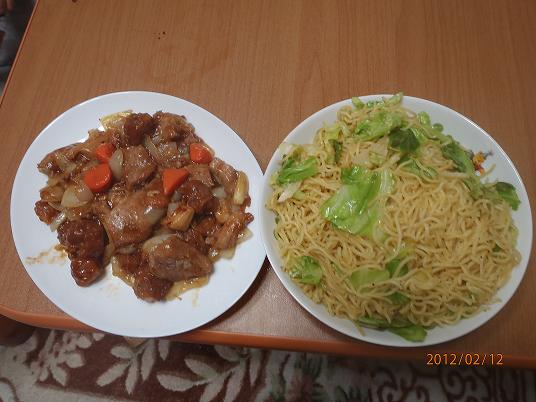 午後7時過ぎに帰って来ました。ご飯を食べ、一服していたところです。(^。^)y-.。o○今、オアシスのベストソングを聴きながらこれを書いています。さて、今晩のご飯ですが、これです。(/ ̄^ ̄)/ ̄ \(。_ 。\)塩焼きそばと酢豚でした。いずれも手料理です。久しぶりの手料理で美味しかったです。(#  ̄ー ̄)〇それと、今日の天気ですが、今日はよく晴れましたね。快晴でした。(^-^*)(・・*)(^-^*)(・・*)そこで、今朝撮った夜明けの写真があります。これです。(/ ̄^ ̄)/ ̄ \(。_ 。\)今日の夜明けです。最高気温は8度とちょっと暖かく感じましたね。明日も、天気は晴れの模様ですが、最高気温の方は、6度とちょっと寒いです。((´д`))ですから、明日は暖かくして行きましょう。それでは、今日はこの辺で、終わりにしたいと思います。皆さん、お休みなさい。ヾ(´〇`)