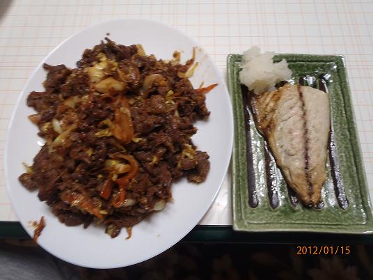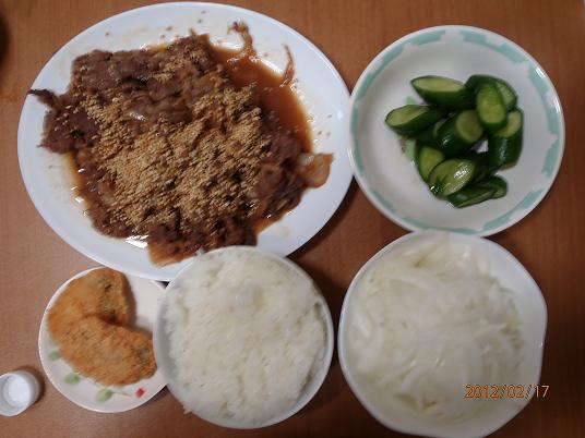 今日の晩ご飯はこれでした。( ^ω^)_凵 どうぞオニオンスライス、アジのフライ、浅漬けのきゅうり、牛肉のすき焼きのタレで炒めたものでした。僕の大好物のオニオンスライスがあったので、今日の晩ご飯は大満足でした。◎浅漬けのきゅうりも美味しかった。すき焼きのタレで炒めた牛肉もよく考えたものだと思って、感心しました。う~んだてに主婦やってないな、と思いました。僕が仕事を引退できたら僕が料理をつくってみようと思いました。以上が今日の晩ご飯でした。ところで、こちらの天気ですが、やはり天気予報は当たりますね。雨が降り出してきました。雪にはならないと思いますが。まだ仕事してる方々は早く帰ったほうがいいと思います。それでは今から、お風呂に入りたいと思います。一旦ここまでで。(^o^)/