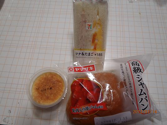 今日の朝食です。今日はパン食です。どうぞ。ジャムパンとたまごとツナのサンドイッチです。久しぶりに食べたパン。美味しかったですね。いずれも、セブンイレブンのものです。ここ最近、セブンイレブンのものを食べてますが。決して、セブンイレブンの回し者ではではありませんからね。そして、デザートです。これは、焼きプリンです。これも、美味しかったです。どろっとしてなくて、程よい硬さのプリンでした。う~ん、美味しかった。以上が、今日の朝食でした。それではまた。