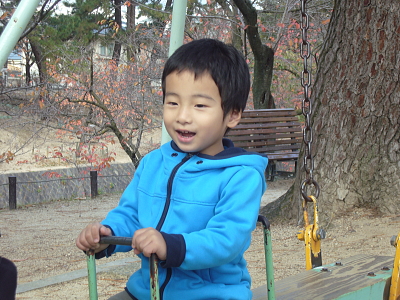 この前の月曜日に以前トランポリンで遊んだ阪神競馬場の公園に遊びに行った時のこと!今までAKIRAは一人ですべり台を滑るのもなかなか足が前に出ないチキン野郎でした。AKIRA 922 Days!しかし、家に折り畳み式のキッズパークを買ったおかげなのか、今回は臆することもなくすべり台へと飛び込んでいきました。飛び込む?(YoutubeからYahoo Video へ変更!解像度が違う!!!2008.10.17)うそっ?何時の間にこんな度胸が付いたの?頭からすべり台へと飛び込んでいくなんて、びっくりしました。家のキッズパークなんて大した高さも無いのにアレで遊んだから?ジムの上に登ってバランスを取って遊んでいたので高いところでのバランスの取り方を覚えたとたんにこの大胆な滑り!ホンの1~2ヶ月で変わるもんだわ!