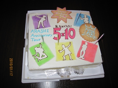 行って来ました、17日。嵐@ナゴヤドーム オーラス公演を見に。この日のために色々下準備して・・・・・ダンナの理解もあり(ありがとう、ダンナくん)朝5時に最寄のJR駅まで送っていってもらいました。前夜ムスメから、おまもりとしてネックレス、あと、「たのしかったこととやったきょくをおしえて」っていうレポート依頼が枕元にありました(笑)そして、朝6時ののぞみで快適の旅、そして、JR大曽根について、ひたすらドームをめざします。途中、迷いそうになりながらも、なんとか列最後尾到着。(グッズです)歩道橋をわたり、ずらーっと三菱電機の前まで列は伸びていました。ここで、お得意(爆)のお友達作り。隣にお1人で並んでいる方がいたので、思い切って話しかけたら、埼玉からやってきたとか。で、色々とお話しながら・・・・チャーム売り切れたらしゃれにならないよねって言ってたんですけど・・・・歩道橋のあたりまで登ったところでかなあ?「すでに残り少ないグッズは、限定ストラップとチャーム」というアナウンスがあり、冷や汗が・・・・・時間はすでに9時すぎておりましたが、列は進むものの、なかなかドームにたどりつけない。そして、10時15分くらいだったかなあ・・・・「えー、限定ストラップとチャーム、そしてクリアファイル集合が売り切れました。」という無情のアナウンス。周りから「えーっ!!」という悲鳴にも似た声が。やっぱり、チャームとストラップ目あての人が多かったようで、かなり列から人が抜けました。しかし、私は頼まれていたものがあったので、どうしよう・・・というのと、実はこの後嵐会に呼ばれていたので、かなり悩んでその後40分ぐらい並びましたが、11時近くなって、頼まれた友達には申し訳ないけど、「ここからだとあと3Hはかかります。」と言われたもので、リタイヤしました。そして、嵐会の幹事、さらさんに電話。近くまで来ているということで、待ち合わせて、一緒に嵐会の会場へ行って頂きました。とっても、さらさん、物腰柔らかな、優しい感じの素敵な女性でした♪嵐会のために、ケーキを準備してくれていて、「10THツアーファイナルおめでとう」と「翔くん誕生日」を祝うため・・・・・会場に着くと、始めましての方ばかりで、ご挨拶しながらも、もうすでに嵐トークが(笑)「チャームもストラップも買えなかったあ」と言ったら、「昨日だったらなんとかしたのに~」なんて言ってくださる方もいて、ほんと、嵐ファンの方は優しいですね。お子様もいて、ほんわり和やかな会。DVDなんかかけちゃって、Mステ初出場の嵐くんとか、Dの嵐(だったっけ?)とか、懐かしい映像てんこもりで。おしゃべりにも花が咲きました。会報の1号なんてお宝を持ってる方もいて、もりあがりました。そして、その素晴らしいケーキがこちらです。素晴らしいでしょう?さらさんがデザインして、色や構成なども決めてくれたそうで、もう、カンゲキでした!!これを21等分にカットして、私はちゃんと青が入ったところを頂きましたよ。14時30分ごろになって、今日参戦組の人はここでお別れ。私も今日会ったばかりの方々だったけど、ドームに向かう方とご一緒させていただきました。ほんとに、お目にかかった方、ありがとうございました。そして、いよいよコンサートです。(次へ続く)
