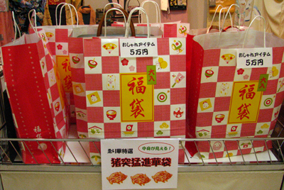 (遅いな・・・・)三が日もとうに過ぎたその日。私はある駅前で所在無くうろつきまわっていた。携帯を握り締め、そこに来るはずの連絡を待っていたのだ。待ちに待って、ようやくその携帯にメールが来た。 『終わったよ。 ちょっと遠回りしてからそっちに行く』その連絡のあとしばらくして、約束の場所に現れたセイに私は駆け寄った。 「大丈夫?」 「ぁぁ・・・・ぃゃ・・・・」うめき声にも似た言葉を発しながら、セイは横にあった壁に片腕をつくようにして寄りかかった。つかれきった顔で、視線を床に落している。彼の大きな瞳を覆う長いまつげに、心なしか乱れたその前髪がかかる。その横顔を間近で目にした私は、思わずその姿に魅入ってしまった・・・・が・・・・・ 「・・・・・ぷっ」次の瞬間には、私は彼の横で大笑いしていた。 「もー、新年早々ナニやってんだか! そんなにぐったりするんなら、ハナからやめておけばいいのに!!」 「いや、自分でもこんなに キッツイ状況になるとは思わなくて・・・・ だってこれ、袋がこんなに目立つとは・・・・」そう、彼が手に持っていたのはかなり大きな福袋。紅白の柄のついためでたいもの・・・・というより、相当派手な紙袋だった。 お腹を抱えて笑う私を横目に見ながら、セイは軽くため息をついている。でもさ。新年早々、そんなもの買うなんて思わなかったんだもん。アダルトグッズ屋の福袋なんて。しかも自ら望んで買いに行った本人がアホみたいなダメージを受けて出てきたなんて。もう笑わずには居られないよ。 「しかも、もうこの辺りじゃ福袋持ってる人も売ってる店も殆ど無くて・・・・ こんなもん持ってる歩いてると、目立ちすぎ・・・・」 「まぁ、もう三が日も過ぎてるんだから、 人気のある店の福袋はなくなってるでしょう」 「そうだねぇ・・・・ この店は、まだ福袋あまりまくってたよ・・・・」 「まぁ、あーいう店で福袋買うチャレンジャーは あんまり居ないでしょう・・・・。 つっか、福袋買うって昨日言ってたのも、 ネタで終わらせると思ってたのに。 まさか本気で店に特攻するとは思わなかったよ。 どういう風の吹き回しですか?」 「それは・・・・まぁ・・・・」セイは何かを言いよどんでいたが、私はその横で相変わらず大笑いしていたので、何を言っていたか覚えていなかった。取り合えず私達は、そのめでたい紅白柄の福袋を手に持ったまま、電車に乗り込んだ。