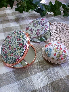 またリバティのコンンパクトミラーをつくりましたコンパクトミラーって手軽にできていいですね☆この猛暑の布をさわりたくないときにはもってこいですミラーは1ヶ月前くらいにヤフオクでGETしました。でもねーーーーーメール便発送してもらったら、一個はへこんで、かなりの力じゃないと開閉不可能で。。。。ショック。。。。そんなこともあるんですね。。。。でも発送は安いほうが助かるしね。。。。昨日お友達が名古屋にいってきたからお土産~とこんなお菓子をくれました。うふふふふこういうお土産大好き小倉トーストのプリッツ。あんこが小袋でついててプリッツのうえにのせてたべるの結構おいしかったJちゃんありがとね~☆おっ嵐がTVでうたってる見なきゃ・・・・・。ではでは おやすみーーーーブログランキング登録しています。お帰りの際ポチしてもらえるとうれしいです^^↓ ↓ ↓にほんブログ村depuis 2005 CHEE