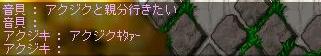 こんばんは、皆さんこの番組はアクジキというネタの生命体の 知られざる生態をお茶の間にお送りしますそして今日の解説者はアクジキが通っていたメイプル栄養専門学校その恩師の方に来ていただきましたどうも、こんばんは それでは早速ご覧いただきましょうん~これは・・・なにをしてるんでしょうか? ネタを店で買おうとしてますね。しかも薬局でネタなんて買ってどうするんでしょうか?ネタがないから薬局にすがり付いたということでしょうなどうやらサーチ機能でネタの塊と言う方を探しているんでしょうかね?いや、ネタをサーチ機能で探そうとしているんでしょうなこの生命体はやはり謎が多いですねええ、私も3年間面倒見てきたはずなのですが彼の思考は理解しがたいものでしたよ ぁ~何か機嫌が悪そうですねぇこれはきっと武器庫PTに入れてもらえず少々イライラしてるようですねそういやさっきから拡声器に食らい付いてますね片っ端からwis送ってるようですね今度はすっごい喜んでますねいや~本当ですねやっとこさ武器庫で狩れる喜びでしょうねそれにしてもきもいですねぇ実は私もだいぶ前から思っていましたよこれは何の喜びなんでしょうか?同類を見つけた喜びでしょうね妙な喜びですね存在自体が妙ですからねそれではそろそろお時間が迫って参りました解説者さん今日はありがとうございましたいやいや、また是非とも呼んでくれたまええ~皆さんいかがだったでしょうかアクジキの生態系はまだまだ謎に包まれています 次回はいつになるかわかりませんが我々はアクジキの生態系を皆さんにお伝えするためにも調査を続ける予定でございますそれではまた会う日までごきげんよう!END・・・アクジキさん すごくない!?俺テレビでてんじゃんギャラとかもらえっかなぁ