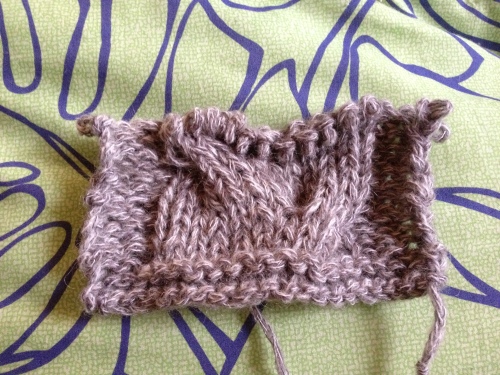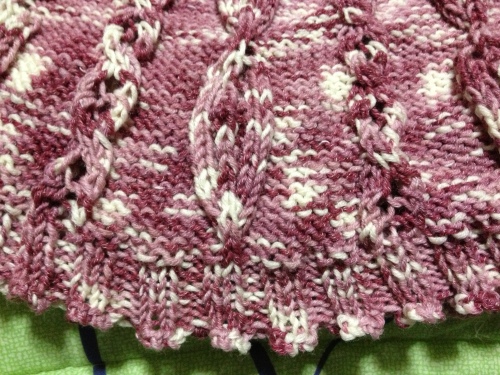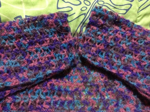 モヘアのカーデ・・・サクサク進んでここまで編めました~糸がショートピッチの段染めで・・・グラデーションでがごちゃごちゃなせいか?画像を載せても模様も、何もかもが・・・何がなんだかサッパリ?わからないのでこんな風にして写真撮ってみましたカーデを開いた状態でヨークから拾い目して身頃下部分を編んでいるんだけど・・・やっぱこれでもわかりずらいかなぁ・・・(゚-゚;)ウーン んじゃ、って事で模様編みのアップ何だかな~これでもよくわかんないねぇ・・・('~`;)このわけの分かんない模様・・・6段まで編めました!残り10段編んだら、また別の模様編みに入ります・・・でもねぇ、編みにくくてなかなか思うように進まないんだよ・・・んで、イライラしちゃうの・・・(-""-;)ムム・・・もう!やな感じ~良かったらこちらもポチっとお願いしますにほんブログ村