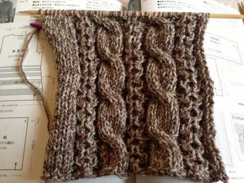ホントなら・・・昨日のうちに前身頃、完成するかも!って、思っていたのに・・・ちょっとバタバタして編み編み出来ずやっと今日、前身頃が完成しましたこれでようやく後身頃が編めるようになりました!んで、早速編み始めたんだけど・・・これって前身頃から目を拾って編んじゃダメなのかなぁ・・・?後からわざわざ剥ぎ合わせるんだったら身頃から拾って編んだ方が楽なのに・・・ウーン (Θ_Θ;) って事で・・・めんどくさがりの私は身頃から拾って編んでみる事にしました・・・(^▽^;)せっかく編んだものはそのままにしといて・・・もしやっぱり変だったら本の通り編もうと思います。 で、昨日のバタバタというのが・・・(ノ_-;)ハア...また母が低血糖で救急車で病院に運ばれちゃったんです。一昨年の暮れに一度そんな事があってその後は薬を変えてもらったりして昨年は何事もなく済んでいたんですけどねぇ・・・今回は入院することもなくブドウ糖を点滴してもらいその日に帰宅することは出来たけど・・・低血糖が発作化して、こんな事が続くのも良くないらしくまた薬で調整するみたいです・・・糖尿病ってホント、厄介な病気ですよねぇ(;-_-) =3 皆さんも気を付けてくださいねぇ・・・ではでは・・・ 良かったらこちらもポチっとお願いしますにほんブログ村