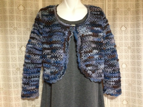 出来ました~モラのボレロ・・・お友達の青*花さんが編んでるのを見て、思わず編みたくなって編んじゃったボレロ、完成しました~あれ?スチーム当てた割には、うねってる?もっとガンガン当てるべきだったのかなぁ・・・ウーン (Θ_Θ;) んで、こちらは編み地のアップ・・・縁編み部分はこんな感じ・・・このボレロ、縁編みも可愛いの~ (=v=)ムフフ♪ 指定糸を使って編むのなんて、何時以来だろ・・・?前回ピエロさんで買った糸で編んでるのは編みかけのままだしね・・・(^▽^;)確か?旦那に編んであげたセーターがそうだったかなぁ・・・?かれこれ十数年前かも・・・でもやっぱ、指定糸っていいねぇ・・・(*´∇`*)また廃番セールの時、買っとかなきゃ! んで今は、次に編むものを選んでいるところ・・・編みたいものが多すぎて・・・どれから手を付けていいのものやら・・・(゚-゚;)ウーン まぁ、決まるまではポンチョを進める事にしてもうちょっと本と糸を探してみますかね~(゚∇^*) それでは~ 良かったらこちらもポチっとお願いしますにほんブログ村
