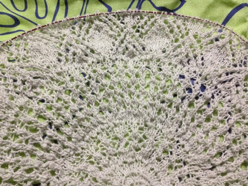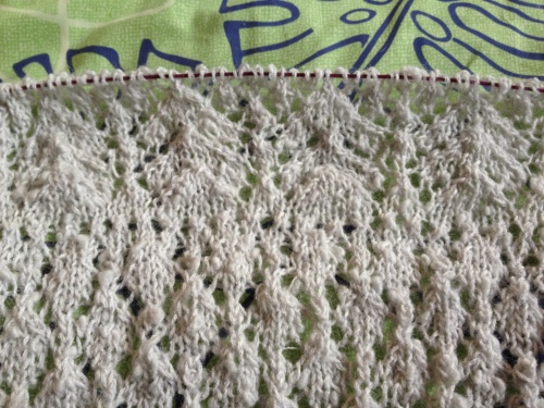 昨日、試し編みしていた例の2作品・・・あの後色々考えた結果、パイナップルのケープを編む事にしちゃいました。っていうか、結局あの後続けてどんどん編んじゃって・・・こんだけ編めてしまったのよねぇ1玉の半分くらい編んだのかなぁ・・・?編みにくい、編みにくいっていいながら案外編めちゃうものなんですねぇ・・・(^▽^;)なのでこのまま続けて編んでみようと思います! んで、スパンシークカラーのショール・・・ついに完成しちゃいました~ヾ(〃^∇^)ノわぁい♪ 只今・・・ブロッキング中なので明日辺りには・・・?お披露目出来るかなぁ・・・って感じです。で、やっぱりショールを編み始めるとどんどん編みたくなちゃってこんなのも試し編みし始めましたこっちも半円形のショールなんですが・・・糸をこのまま使うか・・・?それともモヘアにしようかと思案中・・・(・へ・;;)うーむ・・・・?まぁ、チュニックベストでも編みながら、のんびり考えようと思います(笑)よかったらこちらもポチっとお願いします(^O^☆♪にほんブログ村