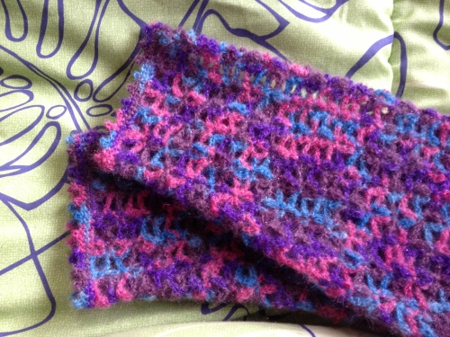 昨日から編み始めたスパンシークカラ-のショール・・・だんだん大きくなってきました~(*゚▽゚)ノ まだ小さいうちは出てくる色の幅が広かったけどどんどん編んでいくうちに徐々にその幅も狭くなって・・・現在の幅はこのくらいになりましたこれからはもっと幅が狭くなっちゃうよねぇ・・・(゚-゚;)ウーン そうなったらどんな感じになるんだろ・・・何だかここにきてちょっと心配になってきちゃいました・・・で、編み地のアップも載せてみました~って、やっぱ色もスゲー色だし~("ロ";)ゲゲッ!!でも、せっかくここまで編んだんだし・・・取りあえずこのまま続けてみようと思います!現在、まだ1玉目を編み編み中・・・意外と編めるもんだねぇ、ちょっとびっくりw( ̄▽ ̄;)wワオッ!!まもなく2玉目に突入します! もうこうなったら、ガンガン編んじゃうよ~それでは~ よかったらこちらもポチっとお願いしますにほんブログ村