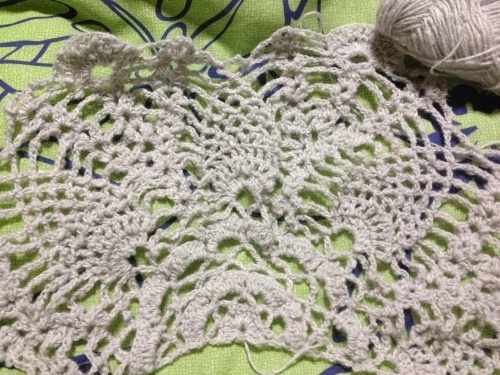 (☆^□^)ノシ゚+。*:;;:*゚・。☆【A*:;;:*HAPPY*:;;:*NEW*:;;:*YEAR】☆。・゚*:;;:*。+゚ヾ(^□^★)お正月ももう3日になってしまいましたね~今頃やっとブログを更新して、新年の挨拶してるなんて申し訳ないんですが・・・年末から今日まで、久々にまったり過ごさせていただきました。今年も、色んな作品をたくさん完成させたい!と、考えておりますので・・・皆さま、今年もどうぞよろしくお願いいたします~ヾ(=^▽^=)ノと、そんな訳で今年も新しい年が始まりましたねぇ。ところで皆さんは・・・どんなお正月過ごしていらっしゃるんでしょう~か?って・・・やっぱり!年の始めも編み編みしてますよねぇ(笑)私も早速、編み始めましたよ~(゚∇^*) 編んでるのは半円形のショール・・・これ現在、ここまで編めました~3種類目の模様編み入りました(*゚▽゚)ノでもだんだん目数が多くなってきているので、なかなか先に進みません・・・(-_-;ウーンなので、息抜きにかぎ針編みで編んでいるショールも進めながら・・・ボチボチ編んでいますこっちもだいぶ大きくなりました。でも画像は確か年末に撮ったものだったかなぁ・・・(^▽^;)残り半分になった正月休みでもうちょっと進められたらいいかなぁ・・・と思っています。完成させられるかなぁ~?あ、そうだ!チュニックベストも編まなくちゃだわ~!年の始めも頑張らなくっちゃねぇ(笑)でもまぁ・・・駅伝でも見ながら、のんびり編み進めようと思います(笑)皆さんもたくさん編んでくださいね~!今年も編み編み頑張りましょ~(o^∇^o)ノそれでは~ 良かったらこちらもポチっとお願いしますにほんブログ村