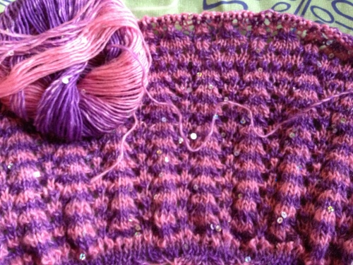 今回、スーパーセール前にフライングして買ってしまったこちらの糸・・・特価!!ソフトスパンシーク カラー内藤商事毛糸 今日、やっと到着しました~(*゚▽゚)ノホントは昨日のうちに到着してくれた方が良かったんだけど・・・また、また・・・旦那がいる昼日中、届いてくれちゃいました・・・┐(-。ー;)┌ヤレヤレ私が購入したのはこんな色の糸・・・ピンクとパープルの段染めになった糸です。なんか、コーダさんとこの画像だとどんな色なのか今一つわかり難くて・・・届いてみたらこんなにきれいなピンクとパープルだなんてちょっとビックリしちゃいました・・・Σ(゚д゚;) ヌオォ!?でも、柔らかくてそんなにチクチクした感じもなくてめっちゃ、いい糸ですよ~(*´∇`*)スパンコールもだいたい15cm間隔で入っていて・・・高級感ムンムン・・・って感じの糸です(笑)実はこの糸で編むものは、もう既に決まっていて・・・こちらのケープを編む予定何だか、スゲー派手なケープになりそうな予感です・・・(^▽^;)で、この糸・・・コーダさんではすっかり売り切れてしまってるんですねぇ・・・現在、一番お安いのが毛糸蔵かんざわさん・・・ リンクもかんざわさんです!まぁ、私がコーダさんで買った時にも残っている色も数もほんのちょっとだったからねぇ・・・"o(-_-;*) ウゥム...かんざわさんでも特価で提供しているのは数が少なめ・・・欲しい方はお早目に購入してくださいね~! って事で・・・そろそろ後もう少しのポンチョにとりかかろうと思います・・・早く仕上げて次、編みたいもんね!それでは~ よかったらこちらもポチっとお願いしますにほんブログ村