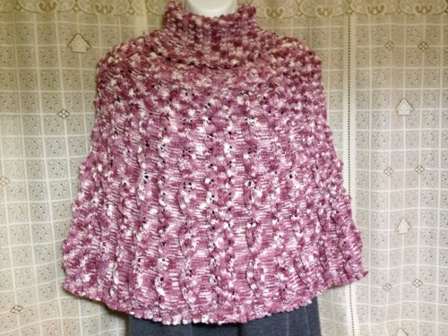 昨日は・・・ほぼ1日中パソコンに向かって、スーパーセールで買い漁っていたので編み編みはさっぱり・・・(^◇^;)後ちょっとで終りそうなポンチョにすら、まったく手が伸びませんでした・・・その分今日は完成させるぞ~って、息巻いていたんだけど・・・これがなかなか手強くて・・・(泣)模様編み3段編んで2目ゴム編み8段編めばポンチョ本体が完成するのに・・・たった10段編んで裾始末するのにどんだけ時間がかかったか・・・2目ゴム編みを鎖3目で止めるっていう始末の仕方にえらい手こずって・・・裾の鎖3目止めに1時間以上かかっちゃったよ~(TwT。)んで、全体図を撮ろうと思ったら・・・入りきらないでやんの~Σ(゚д゚;) ヌオォ!?デカ過ぎかも~!現在は首周りを編み編み中・・・最初は本の通り襟付けようかと思ったんだけど・・・糸も残ってるし、だったら!とタートルに変更しちゃいました(゚∇^*) 参考にしたのはこれ左側のポンチョ・・・フード付きとどっちにしよう?って思ったけど、フードの模様編み考える気力が・・・起きなかったのよ・・・(;-_-)長さを調整しながら・・・もうひと頑張りしようと思います! よかったらこちらもポチっとお願いしますにほんブログ村