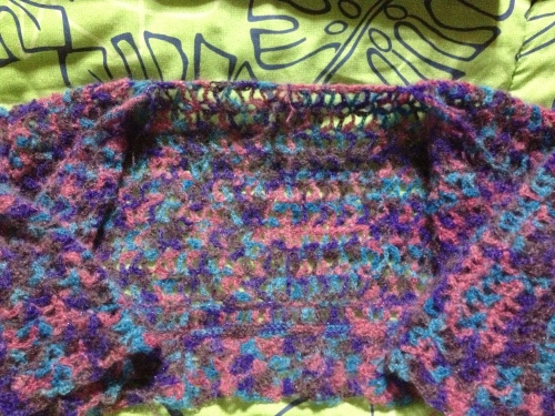かぎ針編みが楽しくてサクサク編めちゃってる・・・・こちらのカーデ・・・左右前後のヨーク部分が編み終わりました。この作品はヨーと袖部分が一緒になっているタイプのもの・・・中央部分から左右に編んでいくヨークです。現在は針を5号から6号に変えて・・・ヨークから身頃部分を拾っている真っ最中・・・なんだけど・・・針を太くしたらめっちゃ編みにくい~(-。-;) でもまぁ、嫌気がさしたら旦那セーターでも編んで・・・気分転換しながらボチボチ頑張るかな・・・急ぐものでも・・・ないもんねぇ(´-`) 良かったらこちらもポチっとお願いしますにほんブログ村