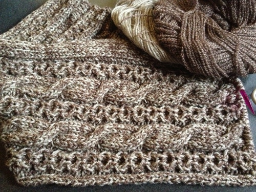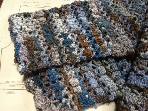 モラのボレロが終って・・・次に何を編むか?色々考えたんだけどやっぱり決まらなくて・・・(編みたいものはいっぱいあるんだけど・・・)しょうがないので取りあえず、編みかけのポンチョ・・・編む事にしました・・・暇を見つけてはチマチマと編んでいたので結構、大きくなったんですよ~(o^-^o) ウフッ後、模様編みをもう一つ編んだら本体部分は出来上がるんだけど・・・これがなかなか・・・目数がどんどん増えてきているので1段編み終わるのにエライ時間がかかって・・・(泣)ちっとも進まないでやんの・・・ウーン (Θ_Θ;) でも後もうちょっとなので頑張って編もうと思います! 良かったらこちらもポチっとお願いしますにほんブログ村