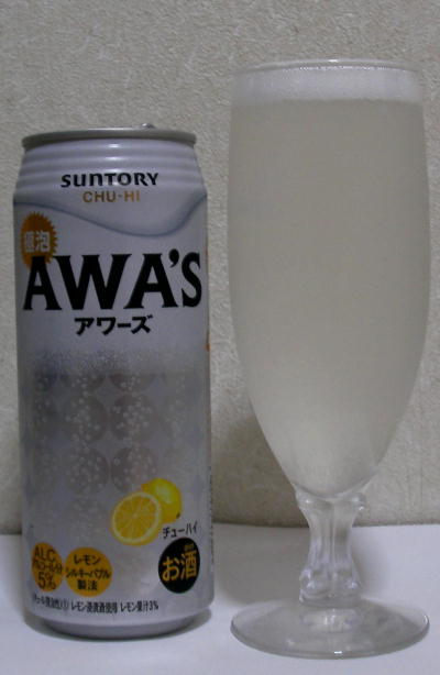最近、ビールの新商品が続々と発売されている。ロ-ソンでタダで貰える(ポイント使うけどね)ので、ビールレビュー用に重宝している。水曜日に貰ってきたのはサントリー アワーズ。・・・?これってチューハイじゃん!!?仕方ないのであなたの知らないビールの世界風に・・・サントリー アワーズ名称・分類・基本情報銘柄名サントリー アワーズ(SUNTORY AWA'S)国名・地域名日本メーカー名サントリー同じメーカーのビールを探す発酵方法[不明]スタイルチューハイアルコール度数5.0%流通量多い ネット通販で探す→楽天市場ビールの特徴概要・特徴「チューハイなのにスゴイ泡」と、泡に拘ったチューハイ。原材料:レモン・スピリッツ・茶抽出物・糖質・香料・酸味料・炭酸ガス含有ビールの評価★★☆☆☆ 期待ハズレ。オススメするほどでは。実際に飲んだ感想注いでみます。色はほぼ無色透明、ピルスナーグラスに勢いよくドボドボと注ぐと・・・泡立たない!?なんで?CMじゃあんなにクリーミーな泡がタップリと出来ていたのに・・・。500ml缶だったので半分ほど飲んで再びさらに勢い良く注ぐ。今度は1~2cm程度の泡の層が出来たものの、非常に雑な泡でもちが悪くすぐ消える。味はごく真っ当なレモンチューハイ、あまり特徴がない。ビールのようなコクがなく、飲み進める中での味の変化もない。アルコール入りジュースと言う印象しか残らない。入手先:コンビニ→ネット通販でサントリー アワーズ (SUNTORY AWA'S)を探す