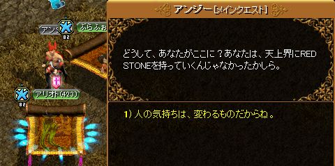 どもも。ありおとでし。きのうあんまし疲れてて「ちょっと横に・・・」のつもりが起きられなく;;めづらしいコトにRS欠勤。|||(-_-;)||||||きっと「明日は大雪だ」とか噂されてるに違いない!イヤ、明日雪になってもアリのせいでわナイ!冬なんだしおかしいなー・・・寝てもちっとも回復しない;;今年のスタートは嬉すぃコトいぱいでいい年明けだったのになぁ1週間でコケまくりですか??なんといっても嬉しかったNO.1はお年玉貰ったコトでしょう!!貰ったんですよwおとしだまっww(〃ω〃)ウフフフフRSでね(笑)まづわギルメンの某シーフさん(笑)に ひろったからアリにお年玉~wってww狩りでシフする気はないんですが、Pvでは武道じゃちっとも役にたってないですカラ^^;「アリでも火力になれる武器ほすぃ~」ってギルチャでボヤいてたんだよね~火力がイヤでも出る武器はお値段もすんばらすぃので><さぁ!敏捷靴履いて装備して試し狩り!!・・・・・・・・を? ΣΣ( ̄□ ̄ノ)ノいあ、ネタじゃありませんよ・・・・・・まぢで・・・たった1足りないだけだもん;; Lvあがったら装備できうもんっっ。・゚・(ノд`)・゚・。 そんでもって師匠からのお年玉ww 「初売りで安かったから^^」とゆうので遠慮なく・・・(笑)「壊れてたから安かったんだ?w」と何気に聞いてみましたら「いや、俺が壊した^w^」と Σ( ̄□ ̄ノ)ノし・・・師匠・・・せっかくなので装備Lvまでに天上購入しようかと思いマス。地獄にしとけ!って言われたケドね師匠はいつも装備Lv↑の装備をくれます。「ガンバってLvあげて装備しな^^」っていいます。アメとムチの上手い師匠だとおもいます(笑)でもそのおかげでこんなLvにまで(ρ_;)ホロリありがとぉ(〃ω〃)今年もガンバる!!ちなみにドロップのほうは 短時間にN格闘服を3回とか・・・・N格闘服DXとか・・・運営さん! ひっくるめて飛虎1回でいいですから!是非よろしく。