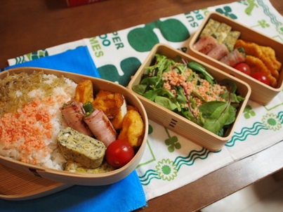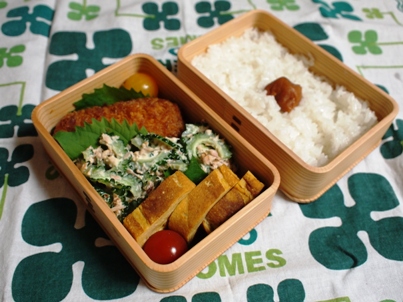 またドタバタしているうちに一週間が過ぎて行く・・・私も忙しいが子供たちも相変わらず忙しい。娘は塾と公文と学校の宿題に日々追われています。さっさとやればいいんだけどさ、まったりしたい気持ちもわかるよね(^_^;)部活もやりたいとか言い出したのは良いんだけど、もともと運動不足だったので、帰ってくるとヘロヘロだ。ほぼ毎日習い事で埋まっているので、部活ったって週二日くらいしか出られないんだけど。この秋からの娘の習い事は塾と公文(英語だけ)とダンスとピアノ。たしかに忙しいよね(;´Д`)ノ息子だって部活の後に塾だのピアノだの行ってるし、宿題だってあるはずなんだけど・・・ヤツが勉強してる姿はあんまり見ない--;やってるはずなんだけど。結構ゲームとかして遊んでるし。宿題の量の差?体力の差?なんか娘だけめっちゃ大変そうに見えるんですけどーーー。 今週はデブくんが早く出かけてしまうことが多くて、デブくん弁当さぼり気味。先週のデブくん弁当・・・これは今週かな?そして息子弁当。いつもはスクールランチなんだけど、予約制なのにヤツが予約を忘れたらしく、今週は弁当持ち多し(-"-)早出で弁当無しで出かけたデブくんの弁当箱を拝借。自家製冷食ヒレカツなど。こちらもデブくんの弁当箱を拝借して自家製冷食ハンバーグなど。デブくん弁当もそうだけど、メインおかずは自家製冷食に頼ることがほとんど。または前夜のおかずとかね。息子は野菜嫌いだから彩りに悩む・・・。そんなありあわせ弁当だけども、部活弁以外のお弁当を久々に持って行った息子によると、お友達からのウケがすこぶる良いのらしい♪ 「お母さん最強だな」だって。(* ̄m ̄)プッ良く見たら品数少ないし、たいした内容じゃないのにね。これはあれだね。曲げわっぱの威力だね(笑)明日もお弁当。また曲げわっぱに助けてもらおうヾ(*´∀`*)ノでもさ、褒めてもらってもさ、やっぱスクールランチでお願いしたい^^;