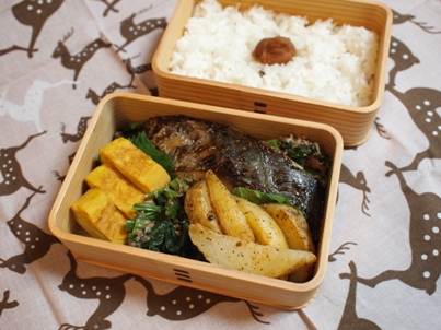 11月だ・・・。早いなぁ。つい数日前まで昼間は暑いくらいだったのに、一気に冷え込んできました。衣替えも半端なままだし、子供らの着るものもサイズアウトだの傷んだりだので足らないし、今日明日でなんとかしなくちゃ。今月は小学校の発表会(学芸会ですね)もあり、その衣装も用意しないといけないかも。買えとか作れとは言われないけど・・・スカートなんて持ってないもんなぁ。同じ役の子が8人もいるので、色とか形はある程度揃えないといけないだろうし。息子もそういえば小学校の時ピノキオをやって、“一番ピノキオ”だった。あの時も出番の多い役は7~8人が交代で出てたっけ。今年の娘はオズの魔法使いで、ドロシーです。“7番ドロシー”(笑)スカートくらいなら作るけど、まだ色の指定とかないのでどうしたもんか・・・。 これは先週のかな?私も仕事帰りに歯医者の検診に行ったので、デブくんの残りを詰めて持って行きました。以前紹介したJUNAさんMOOKのわっぱは小さめだと思ってたけど、かなり少なめに詰めても充分な量だった。(私にはね)もう時期も終わりかな~と思っていたら、底値で売っていたイチジク。最近お安く売ってるのを見かけなかったので、嬉しくて買ってきました。いつもは生のままかジャムにするんだけど、初めてコンポートにしてみた。美味い!後日また底値で少し小ぶりのイチジクを見つけて同じようにコンポートに♪でも小ぶりの方は少し皮が硬めに仕上がりました。もうイチジクも終わりだね。以下、仕事の愚痴。10月末で一緒に仕事をしていたバイトちゃんが辞めました。9か月やってても、ちっとも仕事を覚えてくれなかった彼女^^;それでも最近は彼女のペースにも慣れつつあったのですが・・・。代わりに入った新人さんは書店経験者。おお!心強い!!!と当てにしているものの、やはり勝手が違うので、これから色々慣れてもらわなくては!・・・・・と、いう流れだったのですがーーーー、どうも続かないかもしれない・・・という噂。がーんΣ(゚Д゚;)この繁忙期に!すごく良い子っぽかったんだけどなぁ・・・続けてくれないかなぁ・・・(´Д⊂グスン
