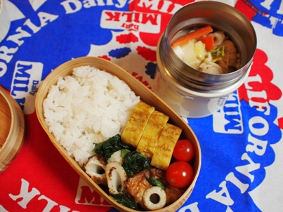 寒くなるとスープジャーが活躍しますね^^シチューやカレーの翌日はお弁当も楽でよろしい♪ これも手抜きの定番、牛丼弁当。あ、先週末は無事に娘の学芸会終了しました~ヾ(*´∀`*)ノ若干ハスキーながら、一応声も出てよかった^^;結局衣装が白のトップスに紺のスカート、という指定で・・・紺のスカートは娘の欠席中にお友達が貸してくれることになったそうなので、白のタートルだけ慌てて作りました。事前に手持ちの服の色についてアンケートがあったんだけど、持ってないくせに白の服ありって書いちゃってたんだよね(^_^;)だって生地があったから・・・(爆)本番の二日前に一時間で作ったよ。タートルって作りだせば早いよね。(だったらとっとと作れ!)裁断し始めてから用尺ギリギリだと気付いて焦りましたが・・・--;;なんとかなってよかった。そんな本番の日のお弁当。息子は弁当持ちで部活、デブくんは仕事でした。あ、今日の弁当画像もあった。今日はカレー弁当でした♪またムーミンのMOOKが出ますね!今回はムーミン、ミィ、スナフキンの3種類!本の内容も違うようで、気になるーーーー!【送料無料】MOOMIN公式ファンブック SPECIAL BOX LOVE! リトルミィスナフキンのバッグの色柄好きだけどなー、やっぱミィか・・・。って、買う気満々ですが^^;こういう形のバッグ、今年はラベンハムMOOKで買っちゃったのになぁ・・・。