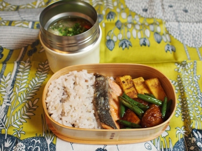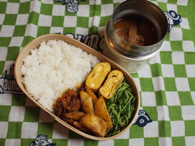 この前の月火が息子の中間テストでしたので、最低一週間はがっつり張り付かねば!と思っていたのですが・・・自分がどーーーーにも眠くてあんまり貼り付けなかった(´Д⊂グスン土日くらいは!と張り付いたものの、今回も悲しい結果が返ってきました(T_T)息子も直前はそれなりにがんばってましたけどね。なんかなぁ・・・自分で効率よく勉強できるようになって欲しいんだけどな。前もそうだったけど、ヤツはどうも一夜漬けに向いてないと思う。「これ絶対出るよ!」と前日にも当日の朝にも確認したところがバッチリ出たのに!一問目に出てるのに!出来ない(T_T)社会ですけどね。私も社会の暗記は苦手だったけどなー。今ならニュースで見聞きしていたり、過去に習ったあやふやな記憶があったりで何となくわかる。またはすぐに頭に入ってくる。という事柄が、息子には全然頭に入らない様子。いまさらだけど諦めた。一夜漬けなんてダメなんだ。コツコツ地道に何度も繰り返し覚えないとダメなんだ。それがわかったことだけが収穫(;´Д`)ノここ一週間ほど、デブくんがお弁当要らない日があったり、またはいつもよりも早出だったり(そしてそれを当日の朝に言い出したり(-"-))で、あんまりお弁当作ってませんでした。てことは、これはいつのだろう???相変わらず魚の日は見た目が美しくない( ̄Д ̄;;皮目を上にして詰めるのがいけないんだろうか・・・。なんかこれも急いで、あったものを詰めた感がヒシヒシと・・・^^;そしてその翌日も同じ作り置きをとりあえず詰めた感がひしひしと・・・^^;;これは今朝の息子弁。上級生の試合だとかでめっちゃ早く出て行ったので、これも焦ってあるものを詰めましたとさ^^;;;テスト週間に我慢していた本を一気読みしたので、次回は本ネタね♪