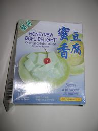写真通りのものでメロン牛乳味の寒天です。昔、シャービックというのがあったけどそのメロン味がしました。ぷるぷるのゼリーも好きだけど、こういう硬い寒天が大好き。自分で作ろうとしたら、寒天、牛乳、メロン味はカキ氷のシロップなのかなー。
