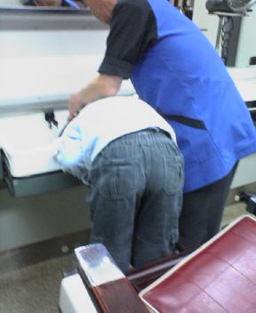 今日はおとといに引き続きアメリカスさん一家のお笑い担当(?)Nちゃんが散髪しにきました♪これでペットのワンちゃんニャンちゃん以外は制覇した私。こうなりゃアメリカスさんちのご両親も制覇するぞ~!(爆)さてさてNちゃんの散髪開始ですが今日はVIP待遇がなんと!!!TVの方に席が回転~散髪開始直後からどこでシャンプーをするのか気になって仕方がない様子のNちゃん。「どこですると??」の質問に私たちは「席がねバー--ン!って落ちてNちゃん流れて行くとよ!」とか「上からジャーーッって水が出てね・・・」とかありもしない事を言ってNちゃんの想像をかきたてる始末(笑)↑私達の言葉に翻弄され悶々としつつジッと耐えるNちゃん。遂にお待ちかねのシャンプータイム♪でもその前にNちゃんは奥にある狭~い洗面所を指差して「あそこでシャンプーするっちゃろ?」これには大爆笑!!!さすがNちゃんだわ~。そしていよいよシャンプー開始♪あれ?なんだか武豊スタイルじゃないよね~とアメリカスさんと話していたら・・・Nちゃん独自の技「とび箱スタイル」!!!そしていつものように荒々しい洗いっぷりに・・・荒々しい乾かし方本当こんなんでいいわけ~?まぁこれもプロの技なのだろう。そして仕上げのカット♪お気に召しましたかしら???Nちゃんはかなりシャンプー台が気にいったようで興味津々でした。何なら週1でもシャンプーしに来る?(笑)散髪が終わってNちゃんがケニーを抱っこしてくれましたケニーもすっかりNちゃんが大好きにあぁ男同士でなければ・・・(爆)やさしくしてくれてありがとねまた遊んでね!実は一緒に長男くんも来ていたけどマンガに没頭してました(^-^;いやぁ~つくづくアメリカス一家は美形ぞろいって思ったよ~。近所で噂にならないのが不思議だわ!3人の成長が楽しみで~す♪いつでもVIP待遇(?)するんでまた来てくださいまし~そしてたくさんのおいしいものありがとう