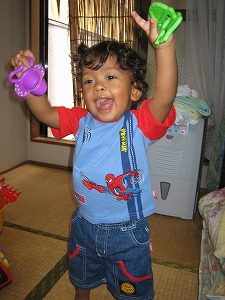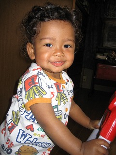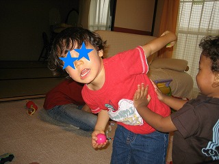またまた気がつけば10日以上更新してなかったなので一気に今日までの出来事を書きます~。まず・・・ケニー自転車デビュー『乗り方のお手本』みたいなケニー(笑)なぜか目がうつろです(爆)ヘルメットもビミョーに後ろに下がり気味だし。でも写真では伝わらないだろうけどかなり興奮気味だったのよ~!気持ちとは裏腹にまたもテンション下がり気味な表情のケニーとケニーの自転車デビューにご機嫌の我が家の大蔵大臣(後ろに写っとります)私としては安い自転車に子供用のシートを取り付けて・・・でよかったんだけどご近所つきあいとしてそういうワケにはいかんのですよ~。まぁ~~おかげで乗り心地はバツグンの自転車です早速次の日は自転車に乗って友達のMちゃんの家へ~。ケニーはMちゃんの息子のKちゃんが一番仲良し♪生まれた時からしょっちゅう会ってるからね~。そしてどうやらケニーはKちゃんを弟みたいに思ってるよう。世話好きのケニーはさらに世話好きになるのよ~。たった4ヶ月しか違わないのに~。遊び疲れて眠る2人・・・。今は大人しいKちゃんもそのうち反撃してくるぞ!ケニー覚悟!!!そして平日はケニーは保育園へ通っておりますがお盆すぎた頃から毎朝預けるたびに大泣きするように後ろ髪ひかれる思いだったよ・・・。でも嬉しい事に先週の金曜日は全然泣かなかったし笑顔でバイバイって言ってくれた!よかった~♪この調子で明日も楽しく過ごしてくれるといいんだけど~。さてさて私はと言いますと毎日毎日眠くて眠くて病気じゃないかって思うくらい睡魔が常に襲ってきます。会社では「MINTY」をバクバク食べたり「眠気スッキリドリンク」を飲んだりしてどうにか乗り切ってるけど家じゃあ~ムリ!初めはケニー寝かせつけて一緒に寝ちゃってもだいたい12時頃には目が覚めてたのに今じゃ朝まで爆睡本気でヤバイって思っちゃうよ。だから当然ブログの更新もできないしなぁ~んにもできずに次の日がやってきちゃう状態。いかん!いかんぞぉぉ~!!!・・・なので今週こそは気合いで起きてるようにするぞ!目の下にメンソレータム塗って対抗じゃ!(笑)そして待ちにまった週末とあるオフ会に参加してきました!スキッピーちゃん&サクママちゃん以外はみ~んな初対面!にもかかわらずみなさん気さくに話しかけて下さって嬉しかった~!!それに初めてケニーと同じ黒人さんとのハーフのお子さんを持つママさんにも出会っちゃいました。ワーーイ♪こうやって遊んでると兄弟みたいケニーより数ヶ月お兄ちゃんのSくん。(つづりはSからなのか自信ナシです・・・)まだ2歳ちょっとなのにカッコカワイイしおしゃれ~!これからもよろしくね♪・・・そして今回さくちゃんとスキッピーさんとこの美香さんは寝てたのでケニーとの絡みは無しでした。残念~。次回に期待しております~。ところでずーーっと買おうか買うまいか迷ってるものがあります。本当にバカらしいんでココに書くのも躊躇しちゃうんだけど。私って「マニアックな笑い」が好きなんだよね。で、竹中直人が好きなの~。(暴露!!!)そんでもって彼が十数年前に深夜やってたお笑いの番組があるんだけどその番組のDVDがこのたびめでたく発売されてねぇ~。それが欲しくてたまらんわけさー。(当時はビデオに録画してたんだけどどこかに消失)↑ちなみにコレ。きっとコレ見ただけで「欲しい!」って思ってる私にひくって思うんだけど~(笑)でもそんな奇特な人が会社にも1人いるのさ!フフフン♪しかし値段がよろしくなくて¥12000くらいするんだよね。もうしばらく待てばいいんだろうけど今すぐ見たい!じゃあTSUTAYAでレンタルすりゃあいいやんって思うだろうけどいつでも見たい!(=自分のモノにしたい!)んじゃ、買えばいいやんって思うだろうけどDVDに¥12000も払う勇気がないのよ~。結局どうしたいの?って話よね。だ・か・ら今夜も悩みながら寝ることにします。あぁアホらし~。