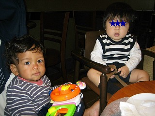 今日は念願のスキッピーさんとさくちゃんママにご対面朝から初デートのようにドキドキだった~いやぁ~何でしょか?初めて会ったのに全くそんな感じがしない!スキッピーさんもさくちゃんママもかなり話しやすいぞ何気に安心してしまった!さっきまでのドキドキはどこへやら・・・。そして生・恭子さん・美香さんに感動~!まるで芸能人に会ったかのような気分だったよ。思わず「う、動いてる~~~!」なぁ~んて当たり前の事言っちゃうし(笑)ちなみにこの時ケニーは爆睡中でしたそしてランチ食い意地のはったケニーはもちろん目覚めランチを食らう!しかし上には上が!!!美香さんの食べっぷりに感動~ケニー惨敗でした(笑)ケニーは横にいたさくちゃんが気になり始めた様子。指でツンツンしたり人差し指をくっつけあったり・・・。恋か?もしかしてこれは恋なのか???2人も恭子さんとLちゃんに続いてラブラブになるのかしら~??さくちゃんスマイル最高だったもんねオレンジももらったし♪今後が楽しみでございます。それからケニーのオムツを替える時恭子さんがトイレまで案内してくれました。きちんとベッドを倒してくれて「ここで横に寝かせてから替えるのよ」って教えてくれたり後ろにある洗面所で「こっちが赤ちゃん、こっちがお母さんが手を洗うの」とか説明してくれて本当しっかりしてるなぁって感心しちゃったよ恭子さんがベッドから「いないいないばぁ」してくれたのでケニーは笑いかわせみの様な声で大興奮で笑ってたやっぱりお姉ちゃんだから下の子の面倒見るの上手だなぁ。ありがとね、恭子さんランチの後は児童館へ・・・周りに感化されたのかケニー初歩き!!!2~3歩歩いたぞ!母ちゃん感動だべ~~日頃家の中で遊ぶか公園で散歩なんでケニーは思う存分遊べたよう。また連れて行きたいな。そして帰り道。恭子さんの○○叩き歩きに大爆笑!!!本当「天真爛漫」って言葉がピッタリの恭子さん♪また笑わせてね!今日はとっても楽しく過ごすことができました。お2人に感謝です☆また近いうちに集まろうね