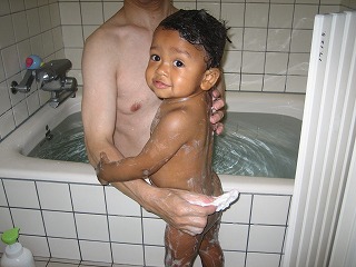 今日は久しぶりにうちの父がケニーをお風呂に入れてくれました最初はとってもご機嫌だったんだけど・・・(*オヤジのだらしない裸まで載せてしまってスミマセン)いつも私が洗ってあげるように「優しく」(ここ強調!)なくかなりスパルタ式で洗われた様子まだ「目をつぶって」って言われてもできないのにいきなり頭からシャワーでお湯をかけられ大泣き父大慌て!!(*またまたオヤジの裸・・・スミマセン)「お前のせいだっ!」とでも言いたげなケニ坊。母の説明不足だった、スマン。←もうジイジと入るのはヤだ!かなり不機嫌になってしまいました「もういいんだってばぁぁぁ~!」今日は久しぶり1人でゆっくりお風呂に入れたけど(パックまでしちゃった)もう当分無理そうです