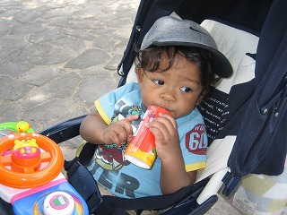昨日はまたまた佐世保に行ってきました。私が出産の為佐世保に数ヶ月滞在したのをきっかけにすっかり「佐世保大好き♪」になった母。その母のリクエストでした。私も出産の時病院でお友達になったママがGWで愛知から佐世保に帰ってきてて会いたかったしちょうどよかった!友達との1年ぶりの再会!それまでメールで連絡はとっていたけどやっぱり実際会って話すほうが楽しいよねケニーと4日違いの息子IくんもめちゃかわいかったIくんがとても色白なので子供版「オセロ」って思ってしまった~(爆)友達とは話す事がたくさんあったんだけど子供が一緒だとなかなかゆっくり話せなくって不完全燃焼おまけにケニーのオシッコが漏れてズボンがビッショリ。いつもは替えの下着や洋服を準備してるのにこういう時に限って持ってきてなかった・・・いらぬ出費。誰もいないジャスコのキッズスペースでご満悦のケニー。私はこの時点でヘトヘト。私「ズボン履こうよ~。」ケニー「逃げろ~~~!!!」でも友達と病院へ行ってお世話になった先生や看護婦さん方に会えて嬉しかった~!そして病室を見てあの苦痛を思い出したよ・・・。友達と会ってる間ケニーは全く寝なかったので車に乗った瞬間爆睡。あ~もっと早く寝てくれたらよかったのに。家に着いてケニーは久しぶりにジイジとお風呂に入りました。ケニーのシャンプーに慣れていない父は一気に頭からお湯をかけたらしい(笑)ケニーびっくりしただろうな~。☆☆☆☆☆☆☆☆☆☆☆☆☆☆☆☆☆☆☆☆☆☆☆☆☆☆昨日の暑さはなんだったの?って思った今日。何も予定はなかったんだけどMちゃんが「ダイヤモンドシティに行こう♪」と誘ってくれたので行って来ました。着く30分前にケニーが寝てしまったヤバイ!昨日と同じパターンやん!案の定ケニーはずーーーっと寝ない。それにベビーカーに乗っていたくなくて愚図るわ、のけぞるわ・・・。しばらく抱っこするんだけど私の腕がもたないから再びベビーカーに乗せると「ギャーーーーーッ!!!」もう母ちゃん疲れたよ・・・。今日はあまりにも愚図りがひどくて私もカッ!となってしまった(後悔&反省・・・)それにMちゃんにも申し訳なくって。その後ミルクを飲んだら寝てくれてようやくゆっくりお買い物する事ができたんだけど・・・最近よく気にいらないとのけぞってキーキー言ったりカンシャクを起こすので私のせいなのかな?って思ってしまう。比べたくはないけど私の友達のおこちゃま達は割りとおっとりなんで余計にケニーの激しさが目だってしまうんだよね~。誰に似たんだか。(私??)もっと余裕をもって接しなきゃいけないんだろうな~。明日もおでかけ♪ケニーがご機嫌でいてくれるといいんだけど~☆