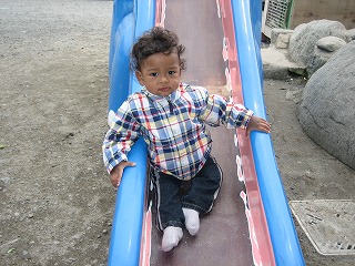 今日は初めて『子どもプラザ』へ行ってきました。もともと区役所に用事があって行ったんだけど5分程度で終わり保健所で何かあってないかなぁ~って思って寄ってみて子どもプラザの存在を知った私・・・入る前ちょっとドキドキだったんだけどママさん達が「こんにちは~」と気軽に声をかけてくれたので安心したよ。施設の方もとても気さくな方で子育ての事などいろいろお話してくれてすっかりリラックスムードケニーもたくさんの子供たちに動じる事なくおもちゃで遊んだりハイハイしまくったり楽しんでる様子。来てみてよかった~~!それからケニーと近い月齢のお子さんを持つママさん2人とお喋りしてたんだけどケニーは何を思ったのか1人のママさんの所へ寄っていきムギューーッ!!!ママさんのお腹の肉をつまみやがった!「や・・・やめなさ~~い!」もう冷や汗かいちゃったよそのママさんが冗談でかえしてくれたからよかったけどホント焦った!日頃私のお腹の肉をつまんでるからね~(笑)比べたかったのか・・・???お昼も何も用意してきてなかったので1時間程たって私の血糖値が急激に下がりバタバタと退散しました行くまでは躊躇してたけど子供にとってもママ達にとってもとても過ごしやすい場所でした。お腹ムギュッで焦ったけどこれに懲りずにまた行ってみようっと家に帰ってからも昼寝もせずに遊ぶケニ坊。あんたタフや~~。おかげで7時に撃沈しました(笑)
