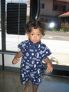 またも久々の更新です~。更新しない間にケニーが保育園デビューしたりして新しい生活がスタートしましたそれにしても「クソ」(言葉が悪くてごめんあそばせ)がつくくらい暑いですね~今日はケニーとお出かけしようって思ってましたがアッサリ却下。家でダラダラと過ごしました。ニュースを見るとどこかの県では最高気温が「38度」だったとかここはインドかーーーー?????全くありえん話です。さてさてプール遊びすらやる気のでないグータラ母なので何にもないのに『甚平』なんぞ着せてみました。「惚れ直したかい?」 To さくちゃん(笑)なかなか似合ってるじゃ~ん(ハイ、親バカです)そして知らぬ間に奥歯が生えてました。忙しかったせいか全く気がつかなかった鈍感母。ケニーすま~んそしていつものように大好きなゆうこりん(小倉優子ね)が表紙の「週間少年マガジン」を取り出しておりました。暑さのせいか(?)ケニーの髪の毛が元から伸びまくってたんだけど更に伸びたような気がしたので散髪しました見た目あんまり変わらない感じだけど襟足なんかはかなりスッキリしました。でも中途半端なんだよね~。私の中では「オバチャン」みたいな髪型に思えてならんのです!こんな髪型のオバチャンいるよね~???父曰く「動きまくって切らせてくれん!」らしいので当分はこのオバチャンヘアーで過ごします~。明日も相変らず暑い日になるんだろうね。明日こそ気合い入れて水遊びさせるか~。