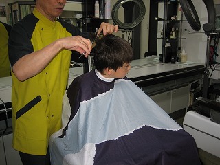 今日は本当は病院へ行こうと思ってたけど朝から雨やら雷で一気に行く気がうせてしまいまた別の日に行く事に。お天気悪いしダラダラ~と過ごしてました。そして夕方ふと携帯を見るとメールが入ってた。おっと!アメリカスさんからだわ!内容は「突然だけど今から散髪いいかしら?」ええ、もちろんですとも!この時間だからガラガラよー。特等席も用意しますわ♪・・・てな訳で30分後来てもらう事に。そして・・・アメリカスさんと長男のRくんがきましたヽ(^◇^*)/ ワーイいやぁ~初対面だっていうのにこのノリの良さ!Rくんがザクザク髪を切られてる横でベラベラ喋りまくる私達・・・。後で聞いた話、母は顔を出したかったみたいだけど私たちがあまりにも盛り上がってたのでタイミングを逃したらしい。それにしてもRくんはかわいかった♪コリャ将来が楽しみだよ、オバサンは(笑)父にジャブジャブ洗髪されてるRくん。おしりもキュート☆「目に入ったー!!」と叫んでました(笑)あれよあれよという間に散髪終了!ケニーが暴れまわってたんで時間が早く過ぎた気がしました。最後にちょっとだけギャグを言ったり面白い顔をしてくれたRくん。今度はお得意のダジャレをオバサンに披露してね~♪またのお越しを~!アメリカスさん、今日はありがとう♪近いうちに会いましょ~(o^∇^o)ノ