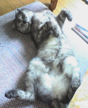 我が家にはネコがいます。名前は『ルル』アメリカン・ショートヘアとスコティッシュフォールドのハーフちゃん。(名前だけ聞くとなんか高価そうに聞こえるなぁ)名前の由来は単に大好きなハワイ・ホノルルから。(最初はワイキキからキキにしようと思った、笑)いつもこんな感じで寝てます。いちおー女の子なんだから股は閉じてね。ケニーを出産するまでルルは私にしか懐いてなくって寝るのも一緒、私がどの部屋にいても横に来て邪魔してたしよくネコじゃらしで遊んでました。でもケニーが生まれてからはあまり構ってあげられなくなってます。ごめんよー。ケニーはルルが大好きでいつも触りたがるんだけどルルは「私に触んじゃねぇ~(怒)」って視線をビシバシ!ケニーにおくって去っていく・・・そんな毎日です。ケニー「遊ぼうよ~。」ルル「フンッ。いやなこった。」2人が仲良くなる日はまだまだ遠い・・・。