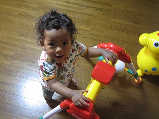 私のSweet baby☆通称ケニー。産まれる前から元気がよくてお腹をガンガン蹴ってた。出産の前日まで最後のあがきか?って言うくらい蹴ってたなぁ。今では一緒に寝ててお腹を蹴られます。「つかまり立ち」や「つたい歩き」もできるようになって歩けるようになるのも時間の問題。ますます目が離せなくなるよー。早いものでもうすぐ1歳。誕生日はどうお祝いしようか考え中・・・って1歳だから記憶に残らないかな。今日ケニーは「ケニー号(歩行器デス)」に乗って我が物顔で部屋中をかけまわりネコのルルを追いかけまわしてました。ルルお気の毒です(涙)これからケニーの成長ぶりやこれまでの出来事などなど書いていきます。今日は眠くて限界なのでこの辺で・・・↓私の掃除の真似をしてるケニー。 今から親孝行だわ♪(←親バカです)