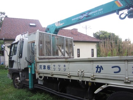 ユニック車って こういうトラックで・・・ ユニック車とドリルマシン posted by (C)takatobaaba このスライドショー にあるように・・荷台の上方に横たわっている青い部分が・・・縦・横・斜めに動き・・先端にある鉤で・・重たいものを吊り上げたり下げたりできます。トーの・・昔馴染みで・・・松本在住のベテラン 田村 孝 プロ から・・・新米の 伊牟田 英次 プロ が・・ボウリングのドリルマシンと・・・ドリル練習用のボールを譲り受けてきました。そうそう・・・問題の・・座席のクッションは・・・思っていたより・・はるかに良くて・・往復とも・・私が助手席を占拠し・・伊牟田プロには・・後部寝台席に乗ってもらいました