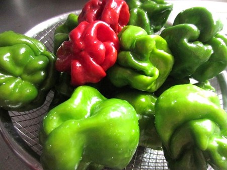 手が痛い・・ 時間が経つにつれ・・火傷のように・・ジワジワと来る感じで手指全体が・・痛痒い 土曜日の夕食時・・・ 子どもが小さかった頃の・・食事の時間は・・ 本来の食事と会話のための時間で・・ テレビは点いていないのが当たり前だったのだが・・ テレビっ子 (爺) のトーと一緒に暮らし始めてから・・ テレビを・・・ ご飯のおかずの一つに数えなければならないかと思われるくらいに テレビを見ながらの食卓になり・・ 今では・・ それが・・ごく当たり前のようになってしまっている 某局の・・ 青空レストラン という番組をみた。ところは・・新潟県湯沢町食材のメインは・・ かぐら南蛮スーパーなどで・・見た事のない野菜だったから・・ふぅ~ん・・へぇ~・・ 程度で・・軽く・・見流していた・・。翌日の・・日曜日に・・いで湯っこ市場 に・・ 水なす を探しに出掛け・・ 西条の・・ 周ちゃん市場 と違って・・ そこには・・ 目的の・・ 水なす は無かったのだが・・そこで・・・まさか・・・の・・前日テレビで見たよりかなり小ぶりではあったが・・ピーマンが潰れて・・オカチメンコ風になっちゃったみたいな・・ かぐら南蛮 (6) posted by (C)takatobaabaかぐらなんばん を見つけた。 そして・・・ その・・そばには・・南蛮みそのレシピも・・なにせ・・・昨日の今日・・・これは・・って思って買ってきました。 かぐら南蛮 (3) posted by (C)takatobaaba で・・・さっき・・夕食後に・・南蛮みそ作りに挑戦してみたっちゅう訳なんだけど・・ かぐら南蛮 (8) posted by (C)takatobaaba かぐら南蛮 (10) posted by (C)takatobaaba かぐら南蛮 (11) posted by (C)takatobaaba かぐら南蛮 posted by (C)takatobaaba何度も・・何度も・・石鹸で手を洗い・・お湯で流したり・・お水で流したりしてみたけど・・・手がねぇ・・指がねぇ・・・とにかく・・熱いというか・・痛いというか・・痺れちゃった感じなの 確かに・・番組の中で・・地元の主婦たちがゴム手をするのを・・しつこいくらいに映していたけど・・・ちょっと・・・甘く見過ぎちゃったようです でねっ・・今・・ネットでチェックしてみたら・・・ゴム手は注意事項に入っていて・・かぐらなんばん を そのまま・・・素手で扱った場合・・ その手で・・眼をこすったら大変な事になるし・・男性だったら・・トイレにしばらく行けないような事も書いてあった。かぐらなんばん・・・美味しいとか・・美味しくないとかいう前に・・取扱注意ですよ~~くれぐれも・・・侮ってはなりませんよ~~~ッ!!