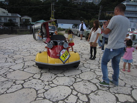 昨日・・・上多賀にあるイベント広場・・うみえーる長浜 で開催された・・・熱海ヒストリカ に 出かけ・・会場で・・・帰りの路上で・・・珍しい車を楽しんできた。会場に集まった車は・・ 170台ほどの・・クラッシックカー目の保養をして・・・海辺の砂浜・足湯を楽しみ・・・ハルタたちが・・・飽きてきた頃を見計らって・・会場の中で・・・一番気に入った車の前で・・記念写真を撮ろうと・・私たちが選んだ車は・・・ 熱海ヒストリカ (56) posted by (C)takatobaaba前輪が2・・後輪が1・・の・・・3輪車昭和39年に・・・生産が終了したという・・ドイツ(西)車の・・・メッサ―シュミット ・・・ 熱海ヒストリカ (57) posted by (C)takatobaabaハルタと花に・・・汚したり・・不都合を犯すことのないように・・触ってはいけないよ・・・・と注意していたら・・・この車のオーナー・・とっても気さくな方で・・・汚れたら・・拭けば良いし・・50年も元気できた車だから・・簡単には壊れないから大丈夫だよ~そう言って・・ハルタを乗せてくれました 熱海ヒストリカ (51) posted by (C)takatobaaba 熱海ヒストリカ (52) posted by (C)takatobaaba普段の生活の中で・・・なかなか お目にかかることのない・・・珍しい・・たくさんの車たち・・私には・・名前も分らないけど・・この ↓ フォト蔵で・・大きな画像も見れる筈です。クラッシックカー