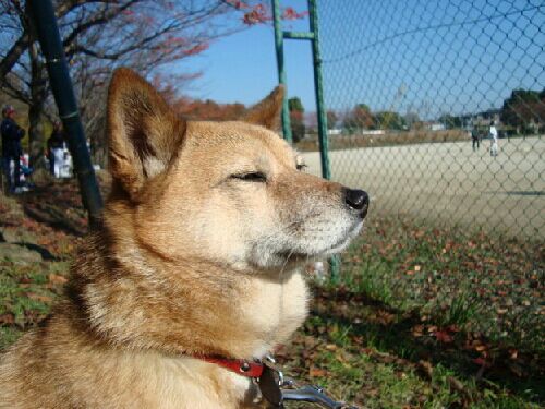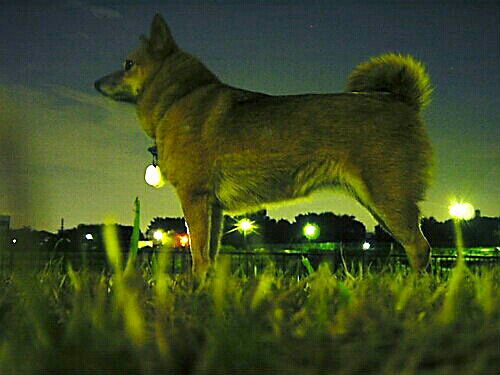 こんばんは。柴犬さくらです。近所の出羽公園です。最近は、14歳の年齢にもめげずに散歩中の柴犬さんと出会うと、怒ったり、すり寄ったりと様々な態度をとるさくらさんです。老いても元気ですよ。(笑)