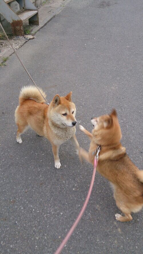 こんばんは。柴犬さくらです。さくらさんも(*^o^)/\(^-^*)笑顔ですね。こちらさんも凄い笑顔でかないませんね。