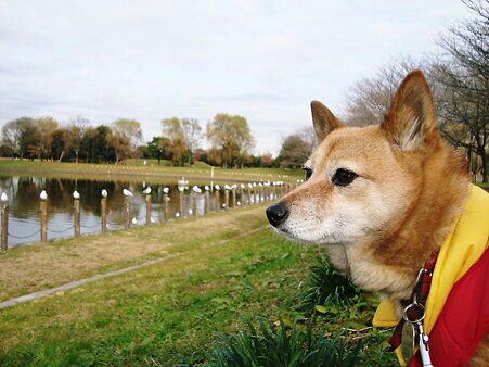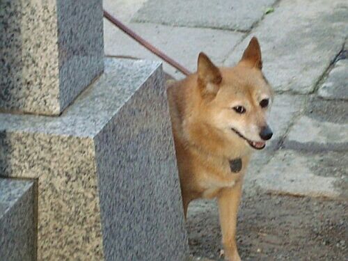 こんばんは。柴犬さくらです。 何となく、しおらしいさくらさんです。向こうから、誰彼さんが来るのかな♪(笑)