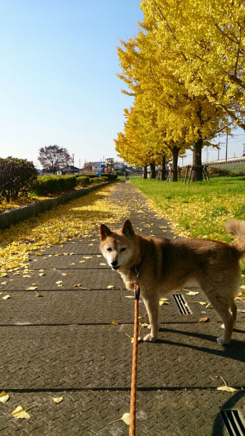 こんばんは。柴犬さくらです。 こんばんは。今日は、近所の出羽公園の紅葉です。♪