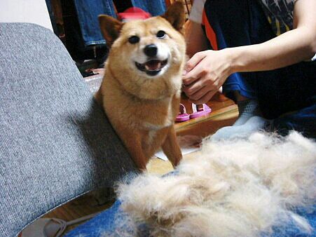 こんばんは。柴犬さくらです。 余分な毛が沢山出ますね。さくらさん手品師のようですね。(笑)