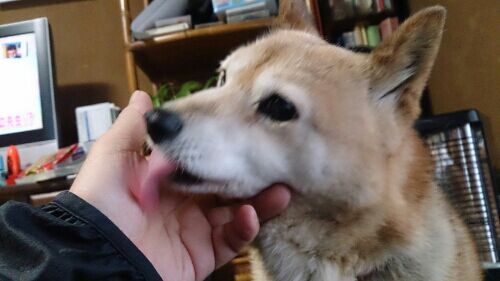 こんばんは。柴犬さくらです。 モミモミ、モミモミ気持ち良いね♪ オーオーそこそこ(笑)。 幸せ(*´∀`*)