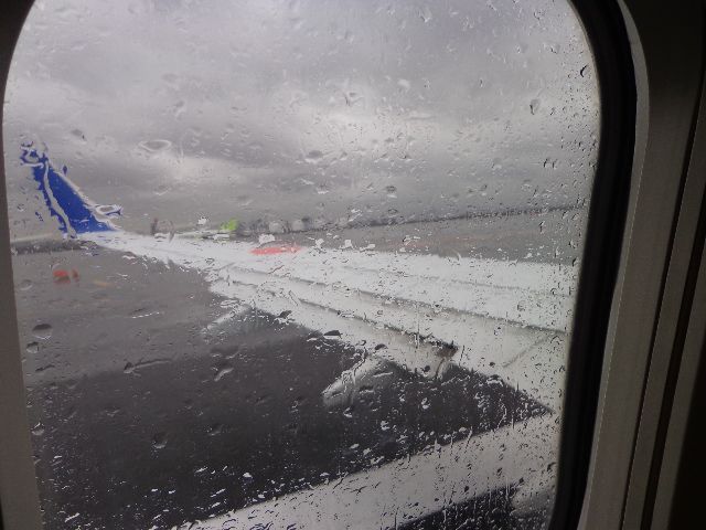 離陸の時は、生憎雨でした。電車に乗る時は、雪が降っていましたけどね。