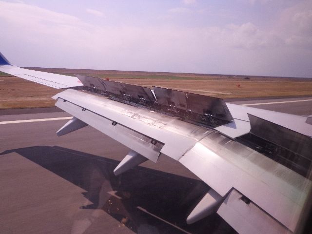着陸寸前は、こんな感じです。スピードを落とすための翼の形状です。