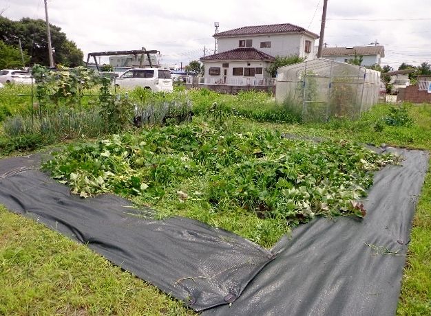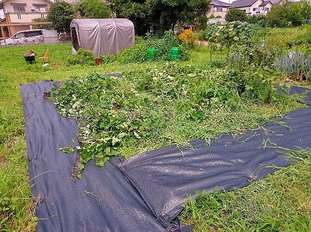 今日は、家庭菜園として畑があまりにも雑草が一杯で管理が大変なので、シートを買ってきてサツマイモ畑の周囲に配置しました。サツマイモのツル返しも回数が減りそうです。