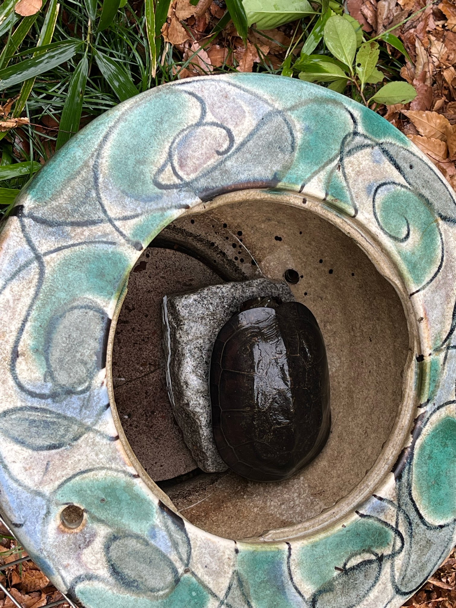 今日は、我が家の草亀さんの冬眠からの目覚めです。火鉢の中で飼ってます。