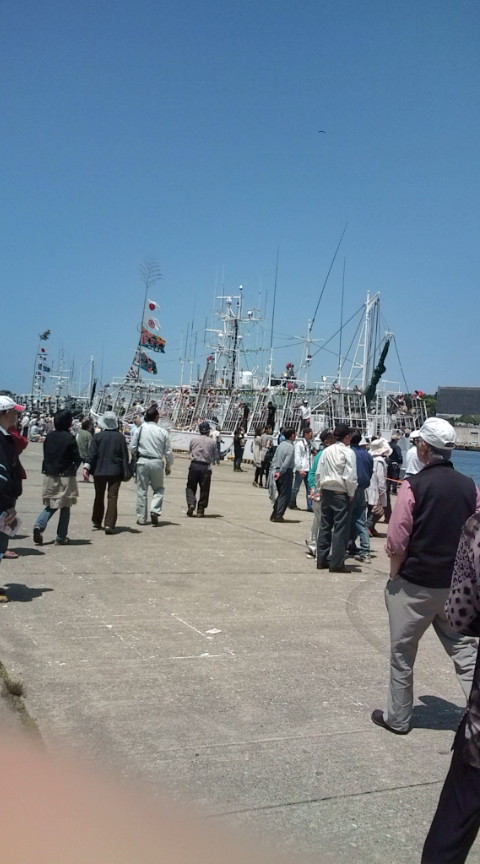 本っっっ当~に、ご無沙汰しておりました素晴らしく長期間、更新してませんでしたしかしサボっていた訳ではなく!かなりハードスケジュールの2週間有難い事ですけどやっとやっと本日、オフらしいオフを迎えました~さかのぼる事13日前・・・(そんなに経ってしまってたのか) 6月5日(土) 『いか釣り船団出航式』思い出しながら書いてる私・・・何だか凄~く懐かしい感じがこの日は天気も良く、港の風も心地良い、最高の出航日和でした 当日朝一の山形新聞に、私の記事が掲載され、出航式の告知も載っていました毎年1千人と言われていましたが、その効果があったのか!会場にはこの日、来場客がなんと2倍2千人近く集まってくださったと言うことでした いか釣り船は全部で10艘その中心の船のまん前に設置された小さなステージで、『天音里望 ミニ歌謡ショー』をさせていただきました 見渡せば180度!ぐるりとお客様に囲まれ、音響ハプニングもあったものの、無事に3曲歌いました特設テントでは、15人の強力なタッフたちがCD販売をしてくれたり、宣伝をしてくれたり大賑わいとなりましたそれよりも何よりも、私自身生まれて初めて体験した、この出航式!!想像以上だったいか釣り船の大きさや、たくましい漁師さんたち鮮やかになびく5色のテープそして出航の汽笛を鳴らし、1艘ずつ港を離れていく船と、手を振って見送るご家族の方々や一般客の姿全てが感動でした10艘全ての船長さんが「飛島」出身正に「飛島育ち」それぞれの船から聴こえてくる歌も、私の「飛島育ち」がほとんどで、ダブルで感動を味わいました「今朝、山形新聞見て来ました~」と、声をかけてくれたり、握手してきてくれた方が沢山いて、本当に本っ当~~~~に嬉しかったです船長さん、漁師さん、これから何ヶ月も海の上航海の安全と船員さんたちの健康、そして大漁を、心からお祈りしています来年も是非行けたらいいなあ***・・・という事で・・・やっと1つ目かぁまだまだ書きたいこと沢山あるのに明日はいろいろな所にご挨拶やキャンペーンで回ってきます明後日は山形県歌謡振興会「新人王大会」へ、天音は歴代グランドチャンピオンとしてお手伝いに!ですからまたまた日記が書けないかも~~~しかし来週は週末まで、イベントの打ち合わせ等しか入っていないので、比較的ゆっくり落ち着けるかなと子供たちともスキンシップをはかって、久々親子団らんに浸ります~間もなく長男の9歳のバースデーも来るし少しずつブログも更新していきますね~